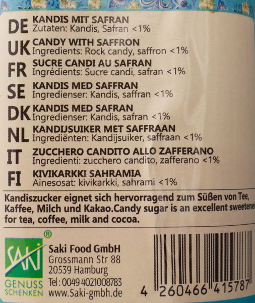 Der hochwertige Safran färbt den Kandiszucker goldgelb und verleiht ihm ein warmes, harmonisches Aroma.
