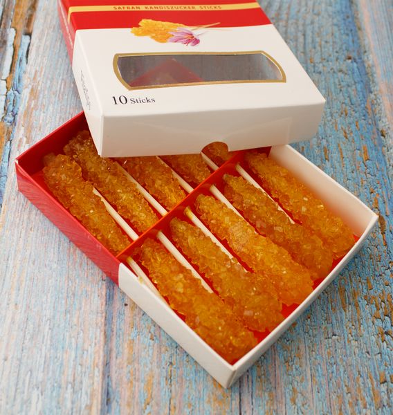 Diese Kandis-Sticks verbinden feine, große Zuckerkristalle mit einem besonders aromatischen Geschmack. Die Safran-Kandis-Sticks sind mit echtem Safran verfeinert und verleihen Heißgetränken eine warme, leicht würzige und elegante Note.
