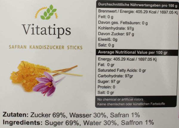 In jeder Packung befinden sich 10 Safran-Kandis-Sticks und 10 weiße Kandis-Sticks. So können Sie beide Varianten entdecken, vergleichen und Ihren Favoriten genießen – ideal auch zum Teilen mit Familie und Freunden oder als besondere kleine Geschenkidee.