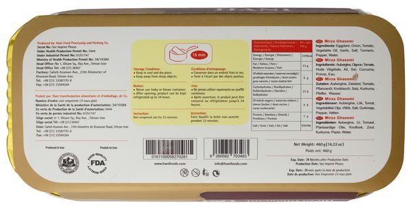 | مدل | Hani - Auberginenpuree Mirzaghassemi 460 Gramm |