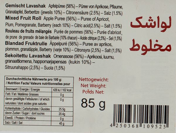 | مدل | Mr. Ghorbani- Fruchtleder Multi Frucht 85g |