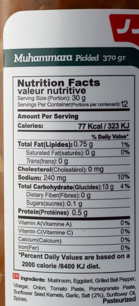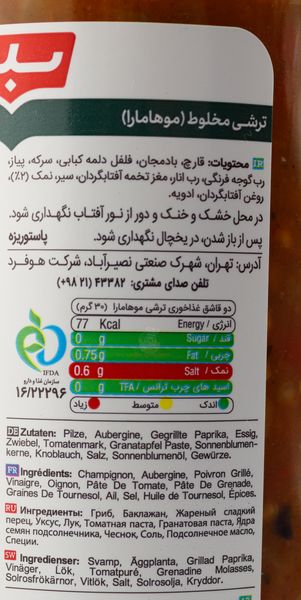 Pilze, Aubergine, Gegrillte Paprika, Essig, zwiebeln, Tomatenmark, Granatapfel Paste, Sonnenblumenkerne, Knoblauch, Salz, Sonnenblumenöl, GewürzeMHD