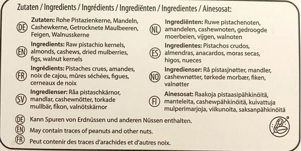 - Packung enthält : Feige, Pistazienkerne, Mandeln, Walnüße, Cashewkerne