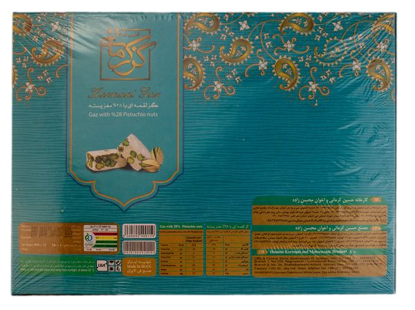 Gaz oder Nougat mit 28 % Pistazien, hergestellt von der Firma Kermani, ist eine traditionelle orientalischen Süßigkeit mit besonders feinem Geschmack.